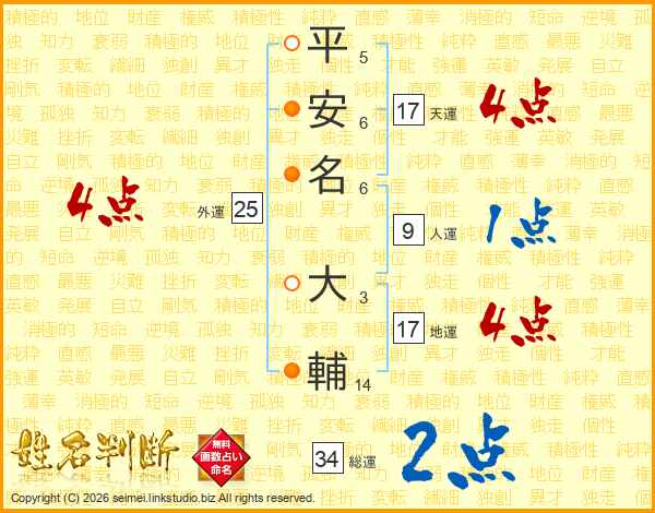 平安名大輔さんの総運は34画の2点!
