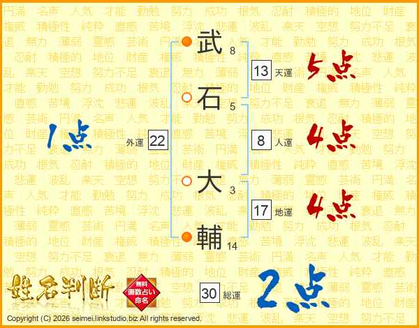 武(8画)石(5画) 大(3画)輔(14画)