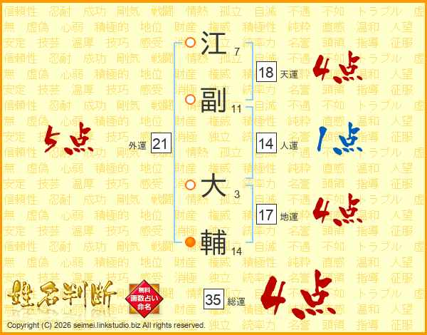 江副大輔さんの総運は35画の4点!