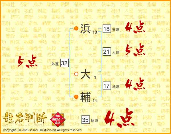 浜大輔さんの総運は35画の4点!