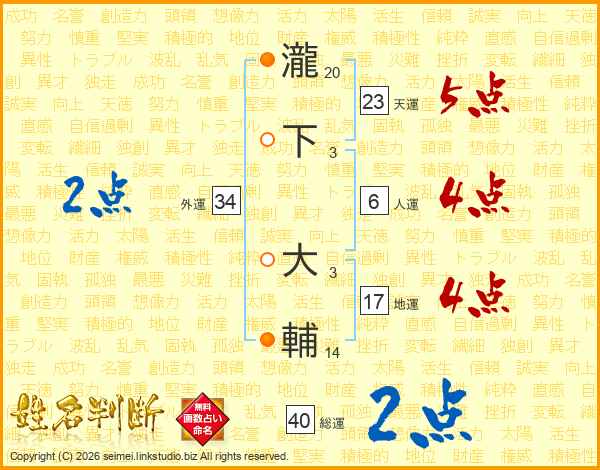 瀧(20画)下(3画) 大(3画)輔(14画)
