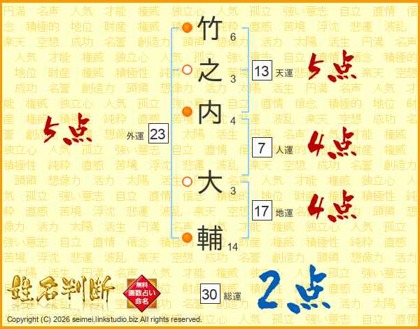 竹(6画)之(3画)内(4画) 大(3画)輔(14画)