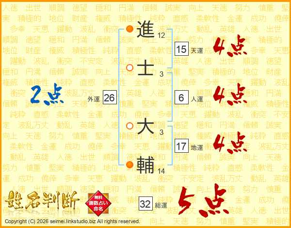 進士大輔さんの総運は32画の5点!