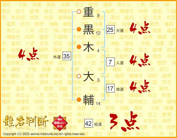 重(9画)黒(12画)木(4画) 大(3画)輔(14画)