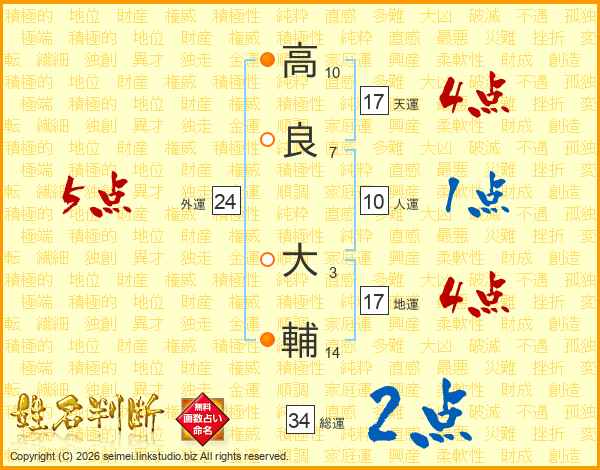 高(10画)良(7画) 大(3画)輔(14画)
