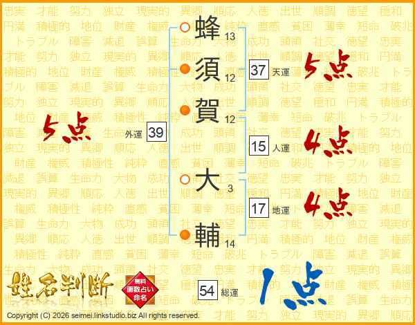 蜂須賀大輔さんの総運は54画の1点!