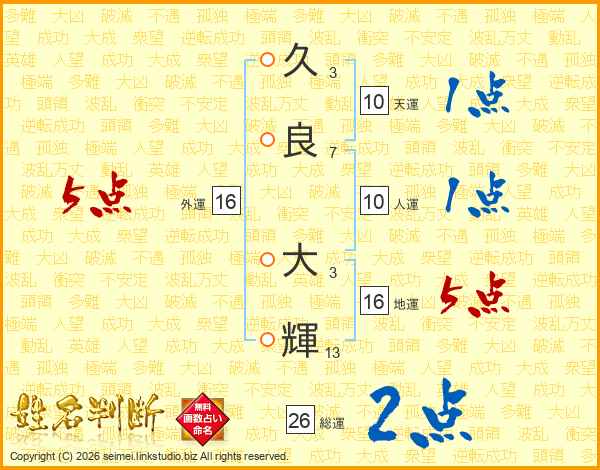 久良大輝さんの総運は26画の2点!