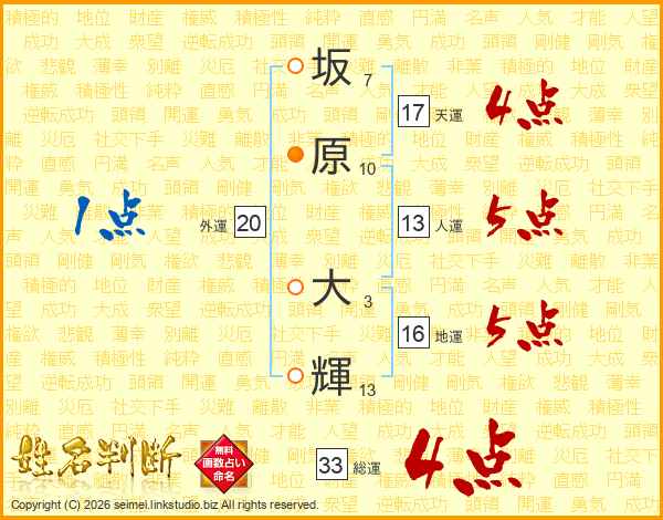 坂原大輝さんの人運は13画の5点!