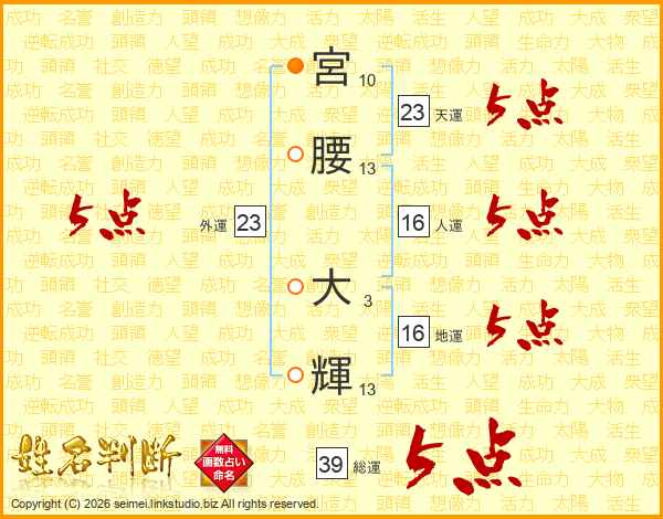 宮腰大輝さんの総運は39画の5点!