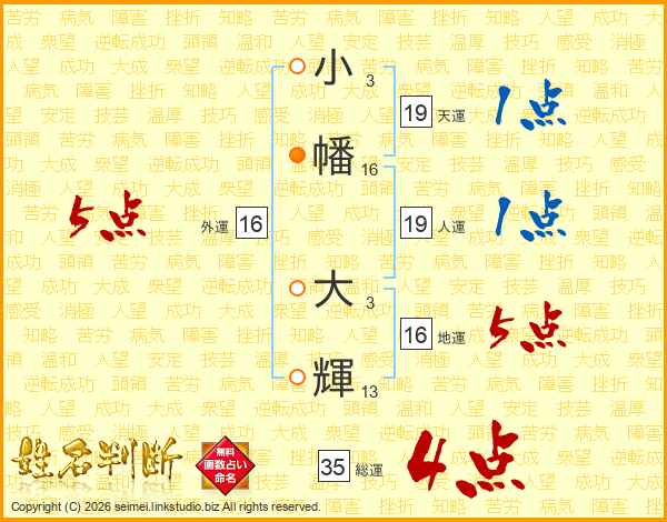 小幡大輝さんの総運は35画の4点!