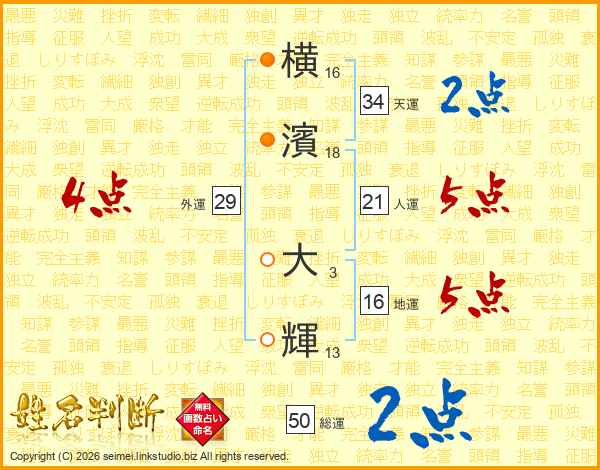横濱大輝さんの総運は50画の2点!