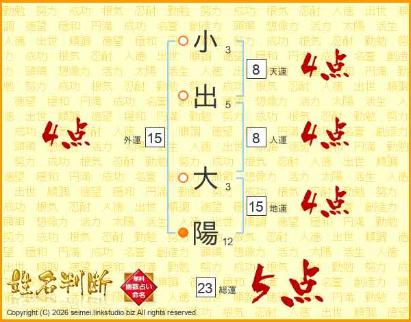 小出大陽さんの総運は23画の5点!