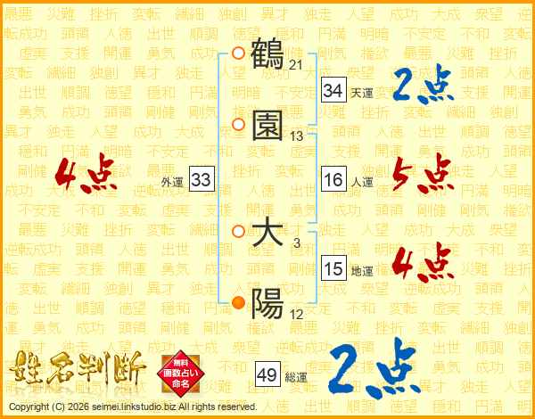 鶴園大陽さんの総運は49画の2点!