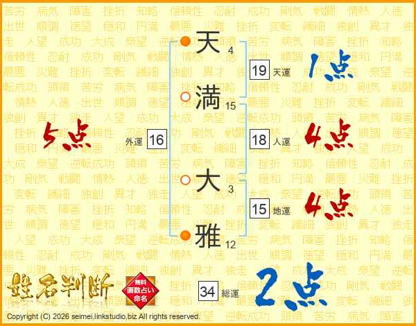 天満大雅さんの総運は34画の2点!
