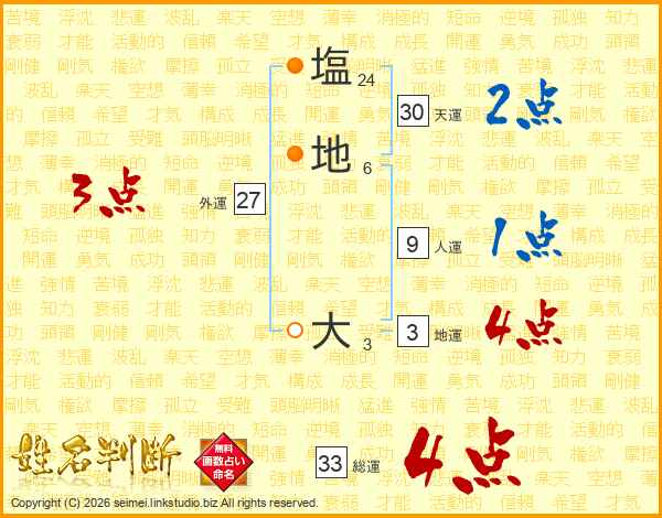 塩地大さんの総運は33画の4点!