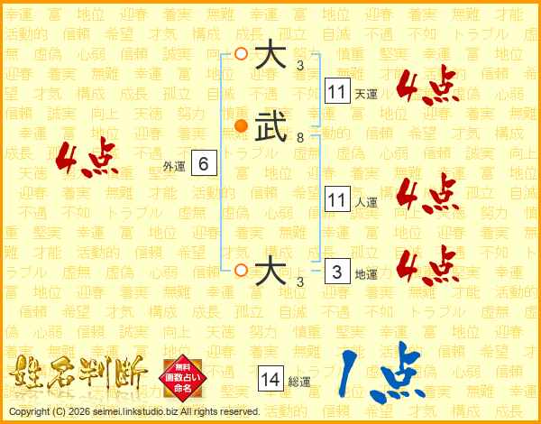 大武大さんの総運は14画の1点!