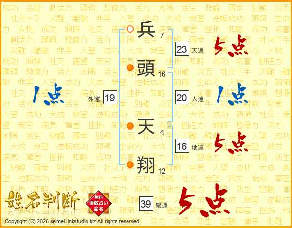 兵頭天翔さんの総運は39画の5点!