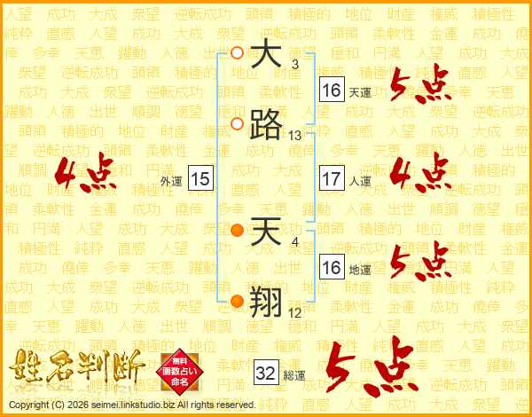大路天翔さんの総運は32画の5点!