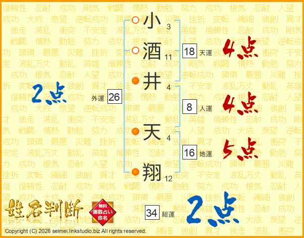 小酒井天翔さんの天運は18画の4点!