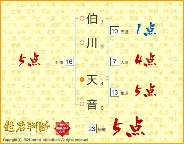 伯川天音さんの外運は16画の5点!