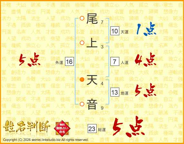 尾上天音さんの外運は16画の5点!
