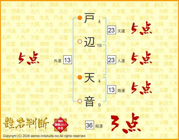 戸辺天音さんの総運は36画の3点!