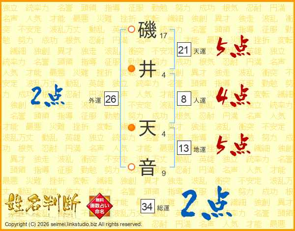 磯井天音さんの天運は21画の5点!