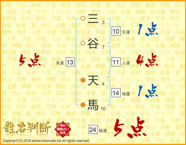 三谷天馬さんの総運は24画の5点!