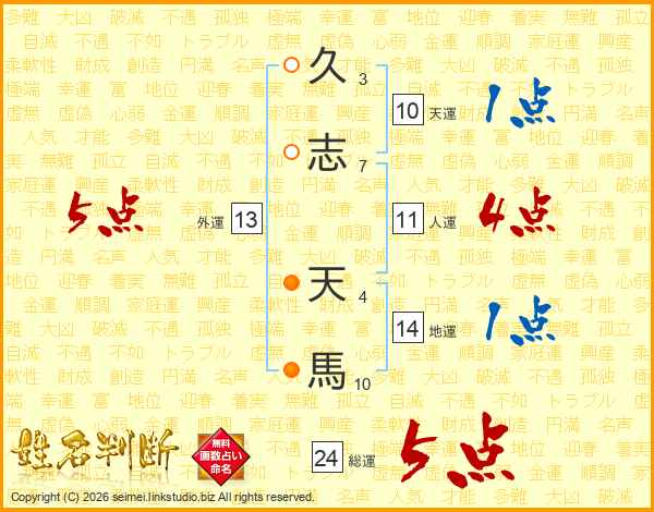 久志天馬さんの総運は24画の5点!