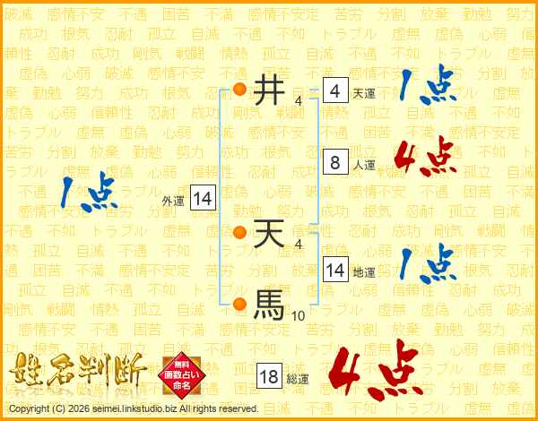 井天馬さんの総運は18画の4点!