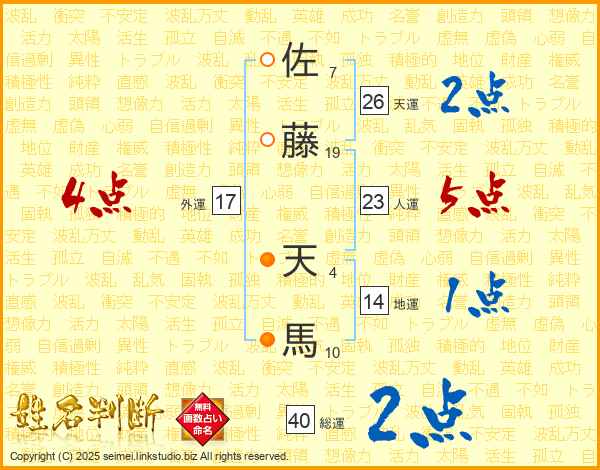 佐(7画)藤(19画) 天(4画)馬(10画)