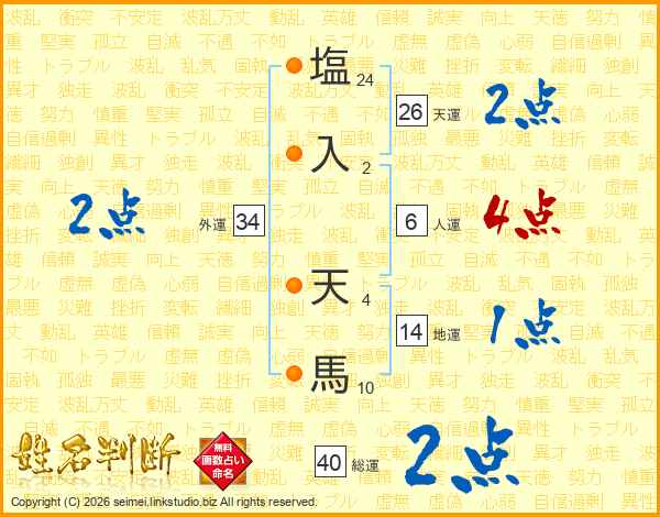 塩入天馬さんの天運は26画の2点!