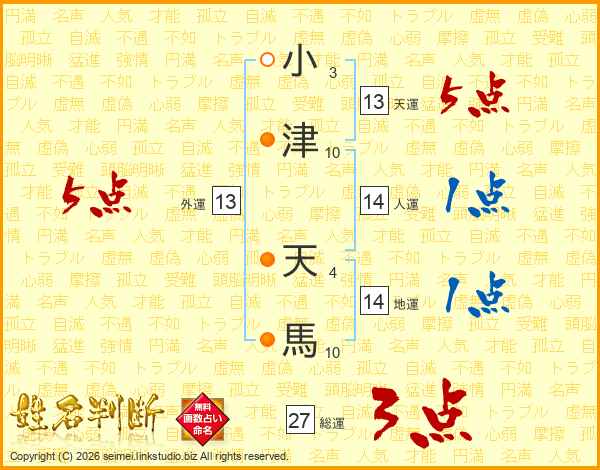 小(3画)津(10画) 天(4画)馬(10画)