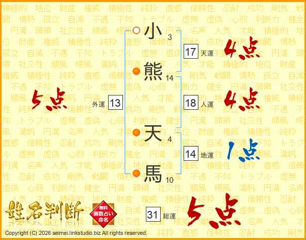 小熊天馬さんの総運は31画の5点!