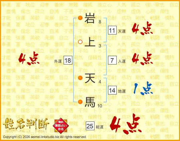 岩上天馬さんの天運は11画の4点!
