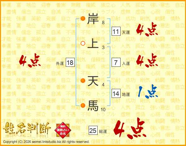 岸上天馬さんの人運は7画の4点!