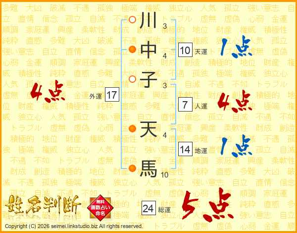 川中子天馬さんの総運は24画の5点!