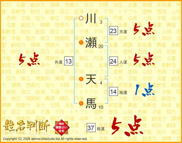 川瀬天馬さんの総運は37画の5点!