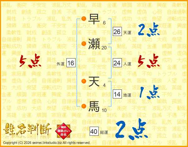 早(6画)瀬(20画) 天(4画)馬(10画)