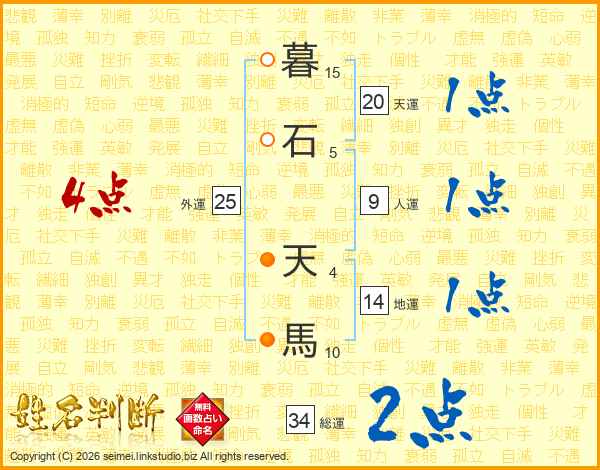暮石天馬さんの総運は34画の2点!