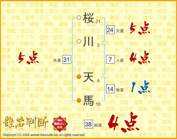 桜川天馬さんの総運は38画の4点!