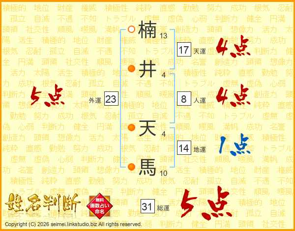 楠井天馬さんの総運は31画の5点!