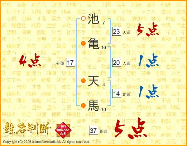 池亀天馬さんの総運は37画の5点!