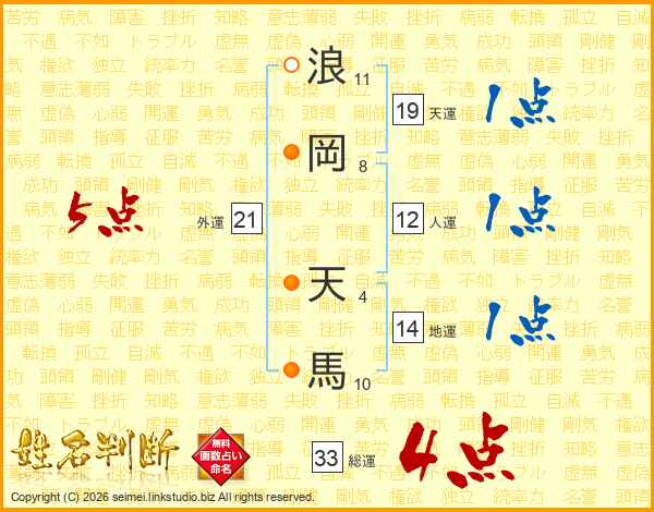 浪(11画)岡(8画) 天(4画)馬(10画)