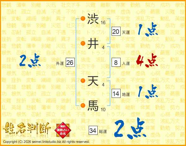 渋(16画)井(4画) 天(4画)馬(10画)