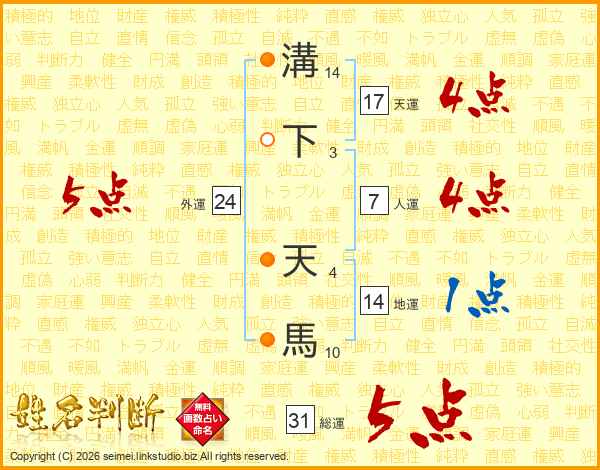 溝下天馬さんの総運は31画の5点!