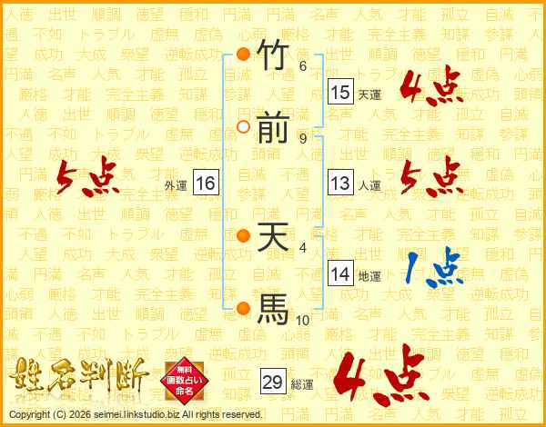 竹前天馬さんの総運は29画の4点!