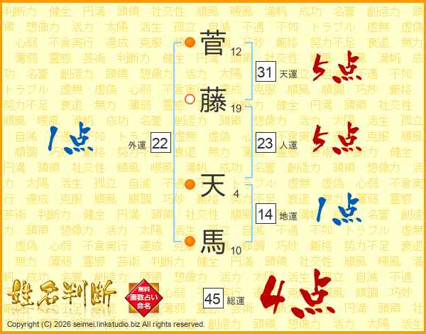 菅(12画)藤(19画) 天(4画)馬(10画)