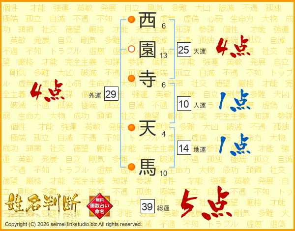西園寺天馬さんの総運は39画の5点!