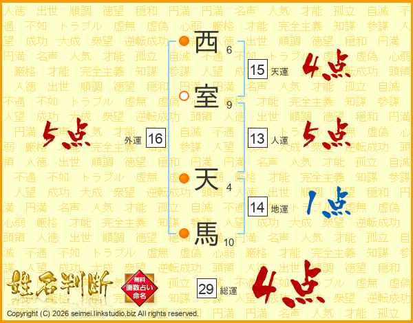 西室天馬さんの総運は29画の4点!